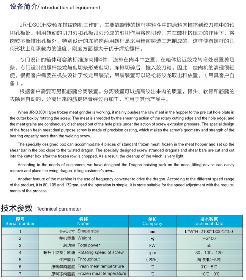 您當前的位(wèi)置為:主頁>產品中心>JR-D300H變頻(pín)凍排絞肉機>