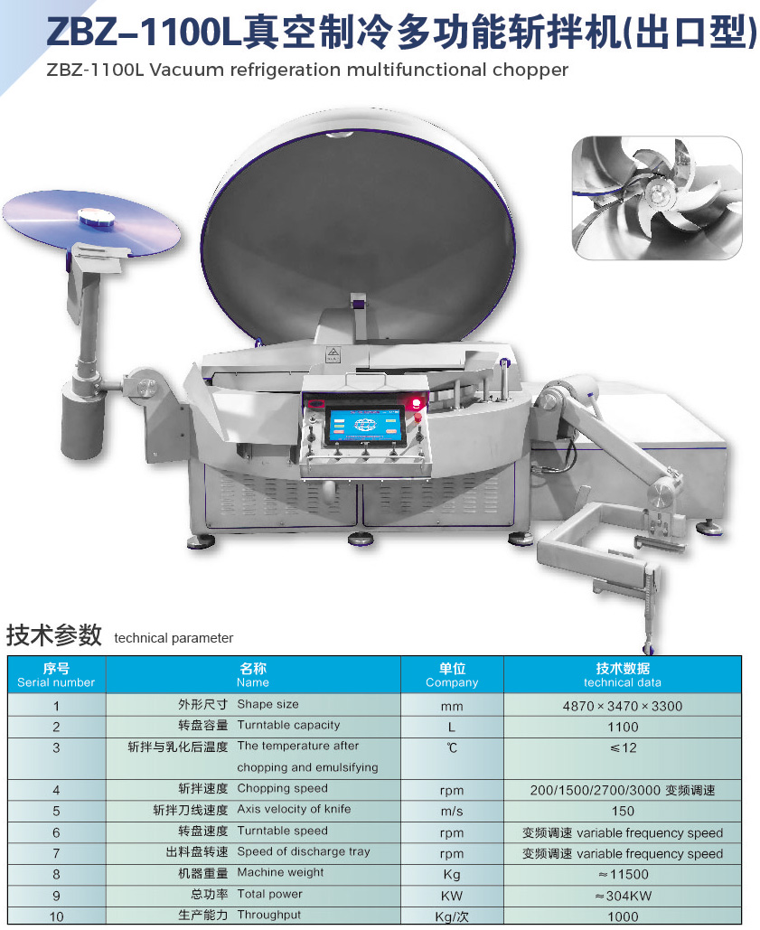 您當前的位置(zhì)為(wéi):主頁>產(chǎn)品中心>ZBZ-1100L真(zhēn)空製冷多功能斬拌(bàn)機(出口型)>